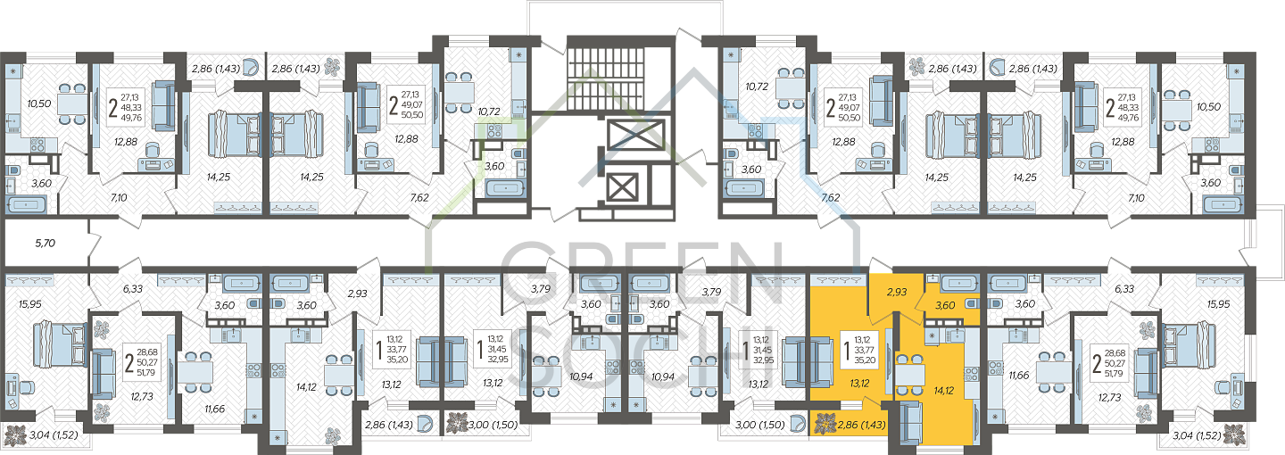 1-к квартира, 35 кв.м., в ЖК Смородина (№13405)