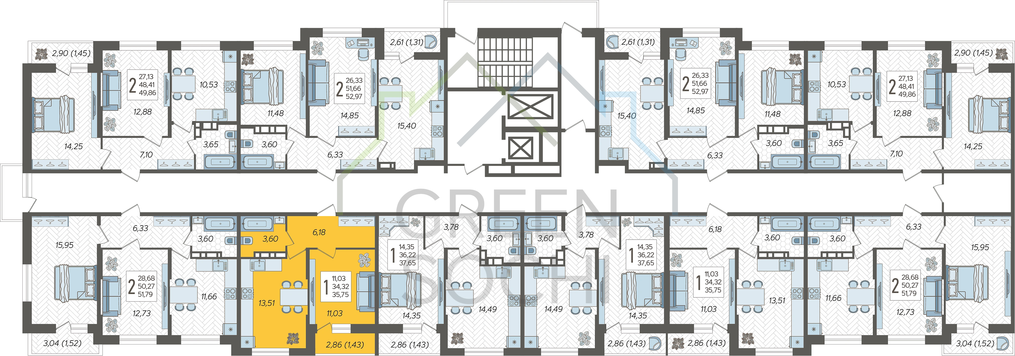 1-к квартира, 35 кв.м., в ЖК Смородина (№13406)