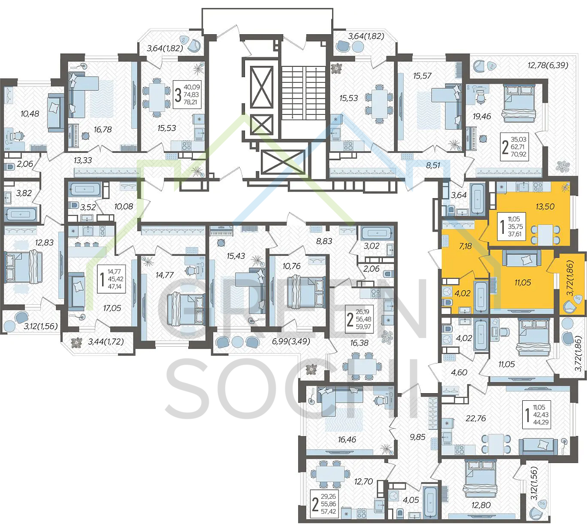 Продаётся 1-комнатная квартира в строящемся доме (Дом Литер 1), срок сдачи: 1 кв. 2025, общей площадью 37.61 кв.м., на 17 этаже. Без отделки, но с возможностью заказать отделку