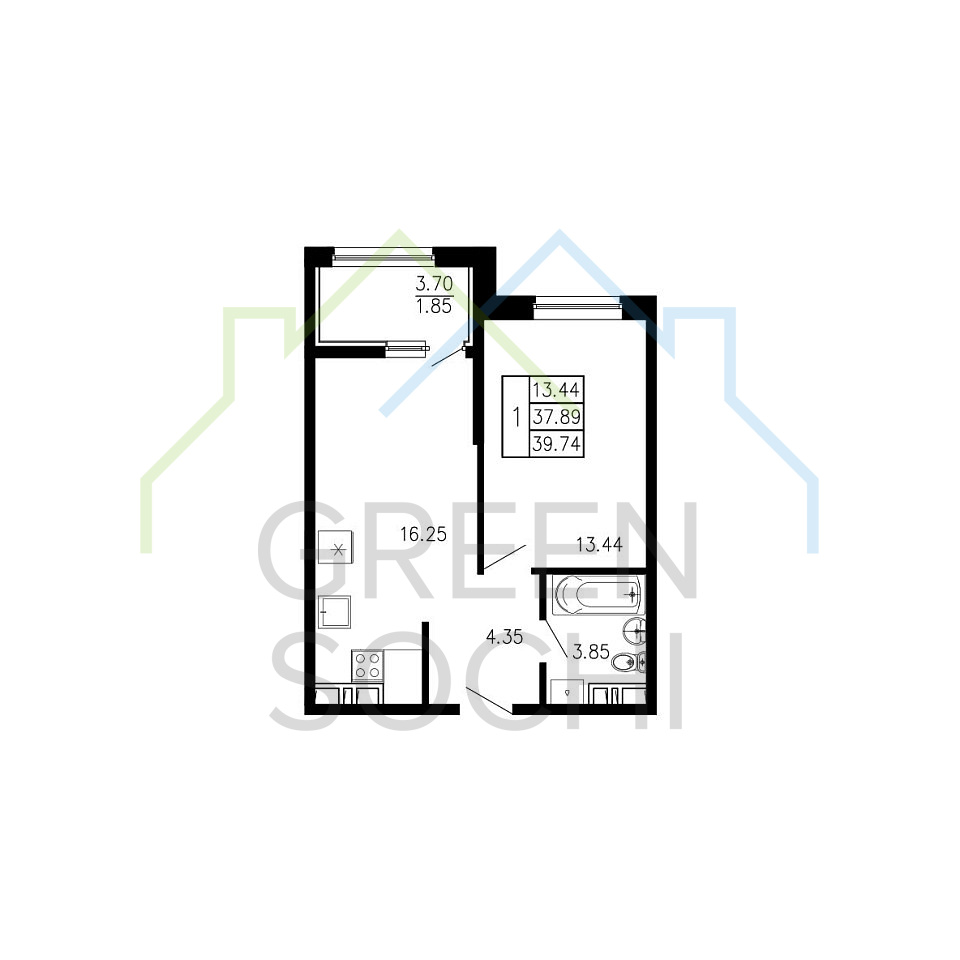 1-к квартира, 39 кв.м., в ЖК Просторы Крыма (№14220)