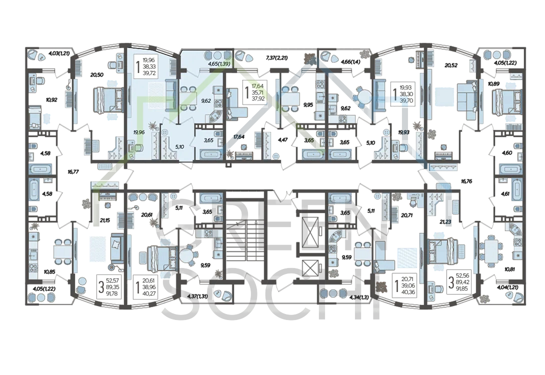 Общая площадь 39.72 м2