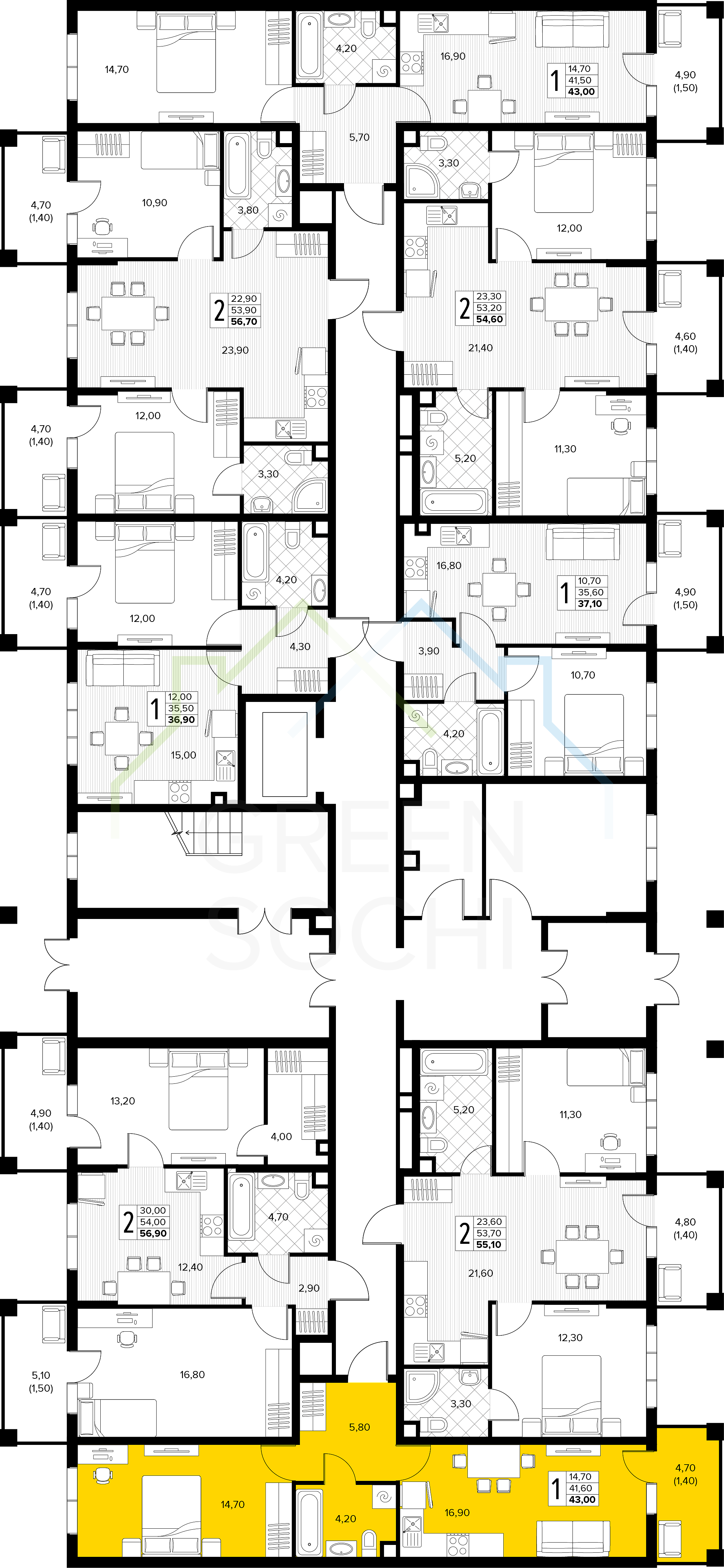1-к квартира, 43 кв.м., в ЖК Кипарис (Холидей Хаус) (№14872)