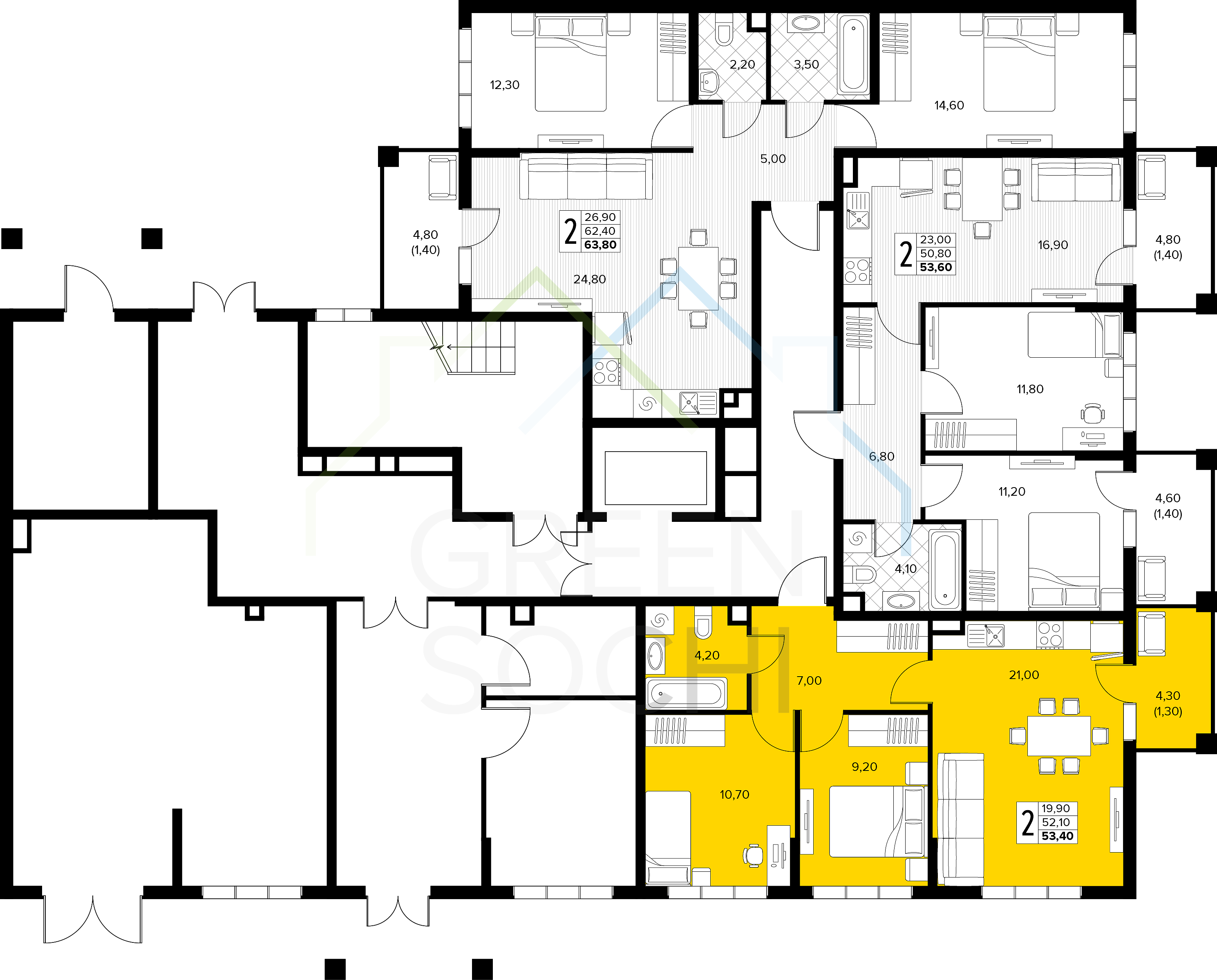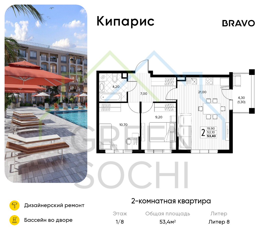 2-к квартира, 53 кв.м., в ЖК Кипарис (Холидей Хаус) (№14865)