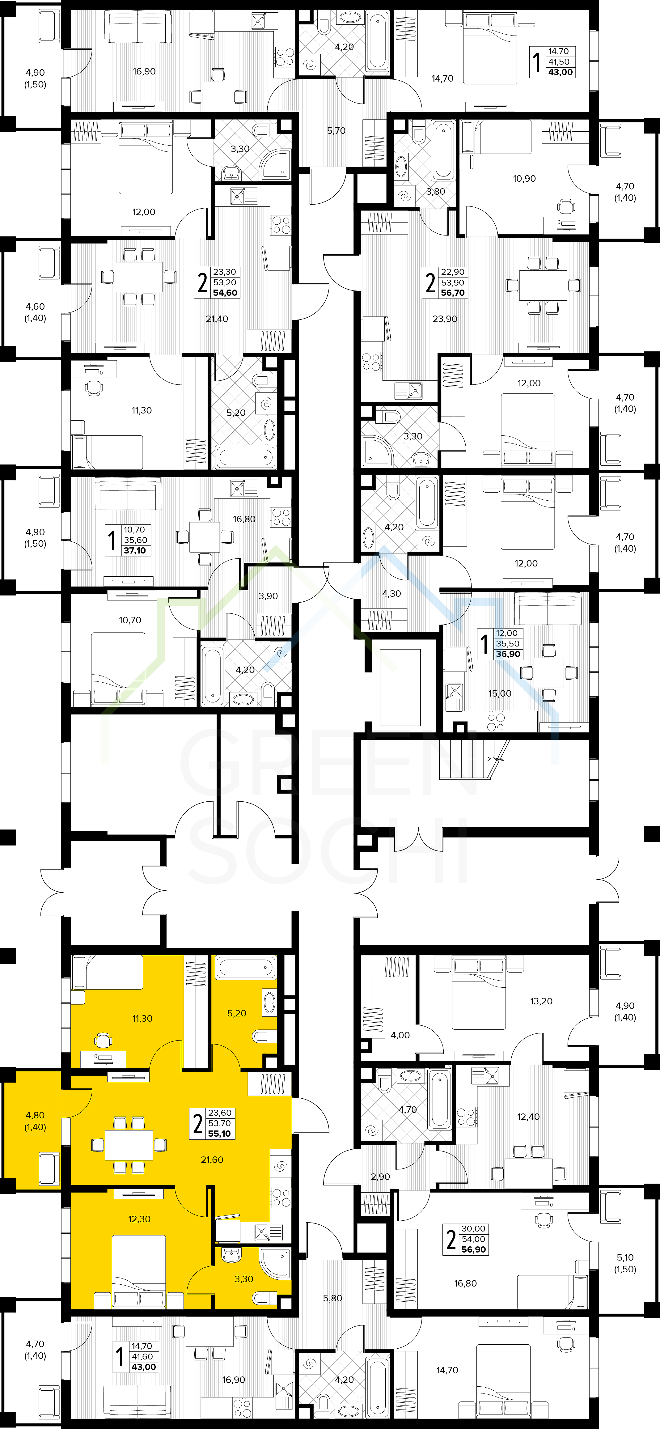 Общая площадь 55.1 м2