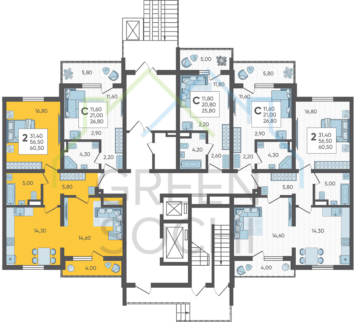Продается 2-комнатная квартира в доме (Литер 4), срок сдачи : 3 кв. 2026, общей площадью 60.5 кв.м., на 1 этаже в новом современном жилом комплексе в Сочи «Горный квартал», Хостинский район. Отличный вариант для инвестиций и жизни.