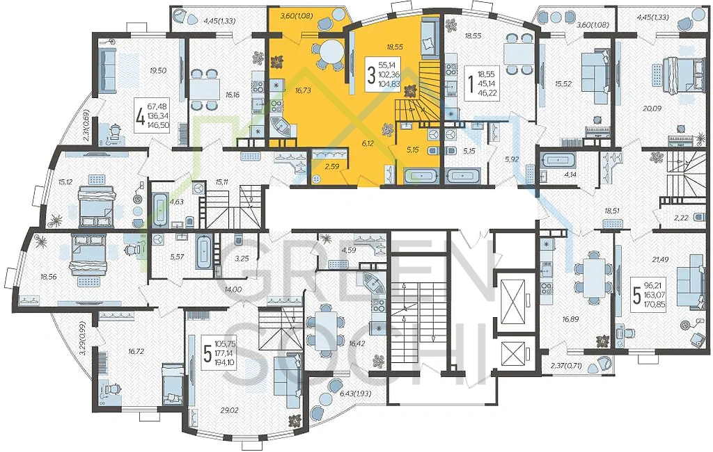 От 4-х до 7 квартир на этаже. Одно из важных преимуществ при выборе квартиры – не много соседей рядом.Лифт, который спускается в подземный паркинг и больше количество парковочных мест сделает жизнь в ЖК “Режиссёр” еще комфортнее!