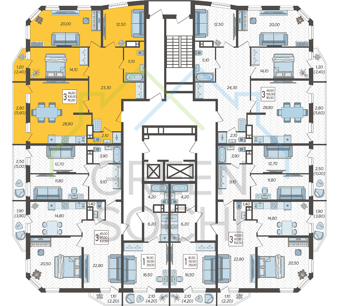 Продаётся 3-комнатная квартира в строящемся доме (Литер 7), срок сдачи: 1 кв. 2023, общей площадью 110.9 кв.м., на 16 этаже. Предчистовая отделка, но с возможностью заказать отделку.
