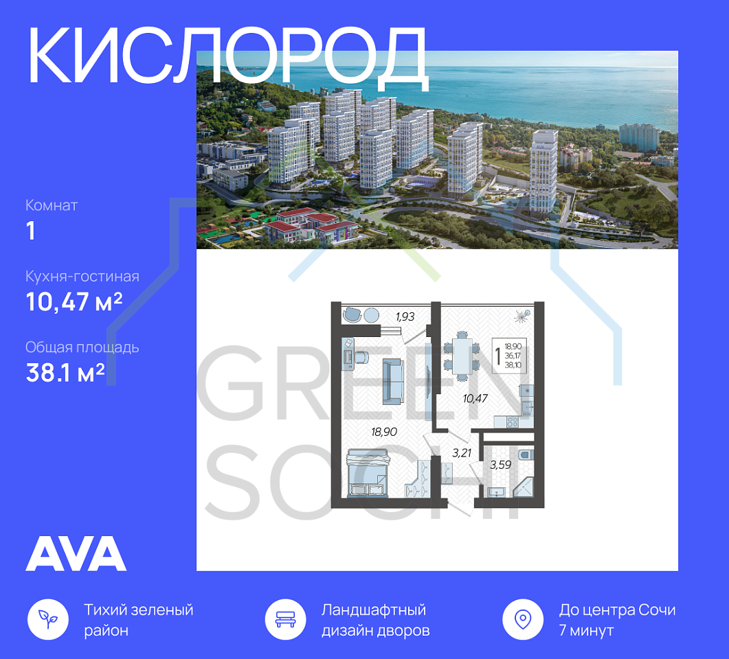 - • 7 минут на машине до центра Сочи