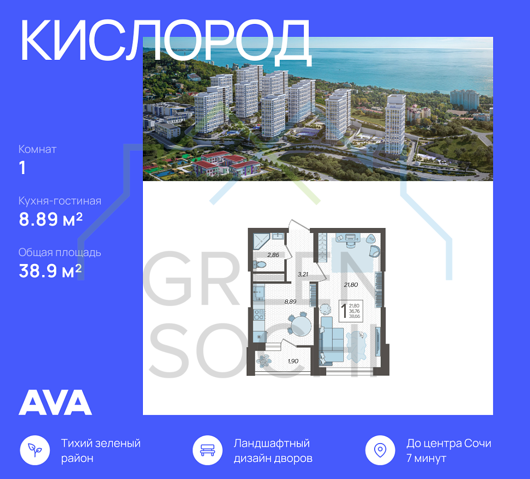 - • 7 минут на машине до центра Сочи