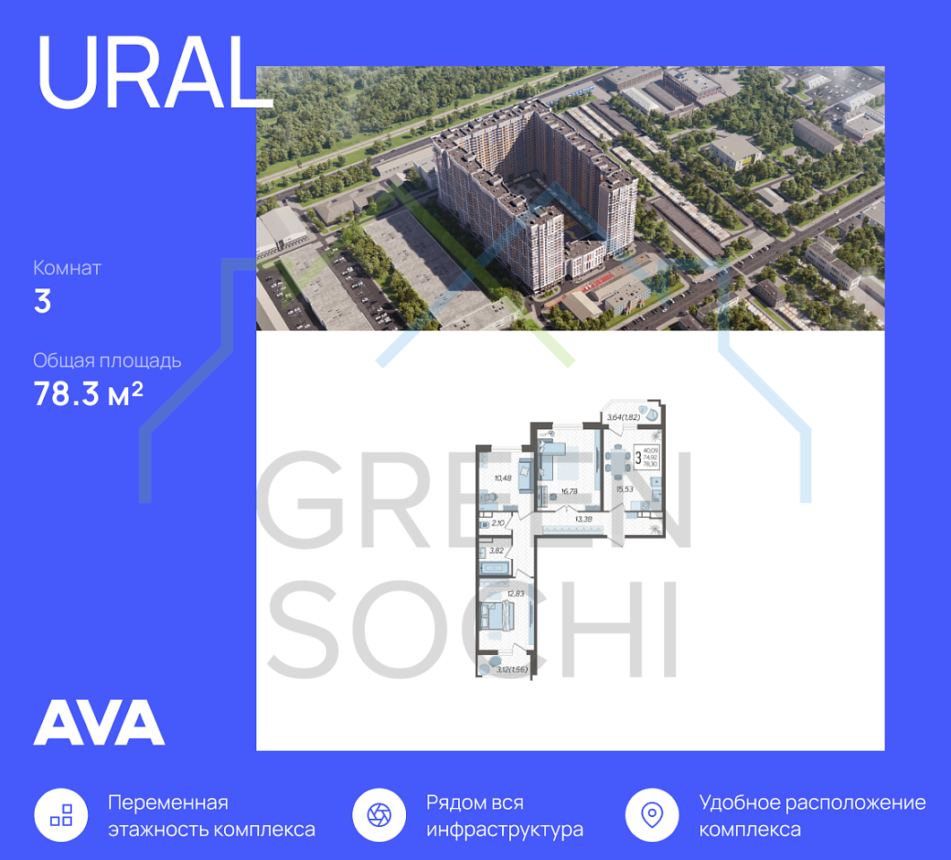 Дом URAL естественным образом, благодаря своей форме, образует закрытую территорию. Стильный фасад дополняют застекленные панорамные лоджии и балконы. С верхних этажей в солнечную погоду можно рассмотреть очертания гор Большого Кавказа. На территории комплекса откроется детский сад и фитнес-центр.Дом URAL находится близко к удобным транспортным развязкам, благодаря чему выезд на море за час без пробок! Внимание уделено придомовой территории с ландшафтным озеленением c системой автоматического полива, современным детским и спортивным площадкам. У ЖК огромная двухуровневая парковка на 819 машиномест.