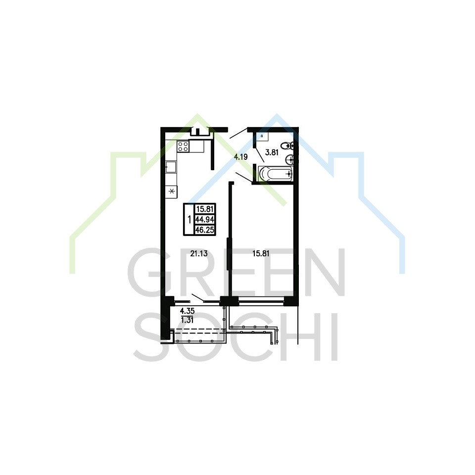 1-к квартира, 46.3 кв.м., в ЖК Просторы Крыма (№18516)