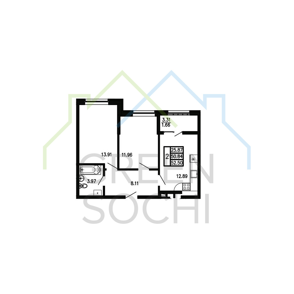 2-к квартира, 52.5 кв.м., в ЖК Просторы Крыма (№18446)