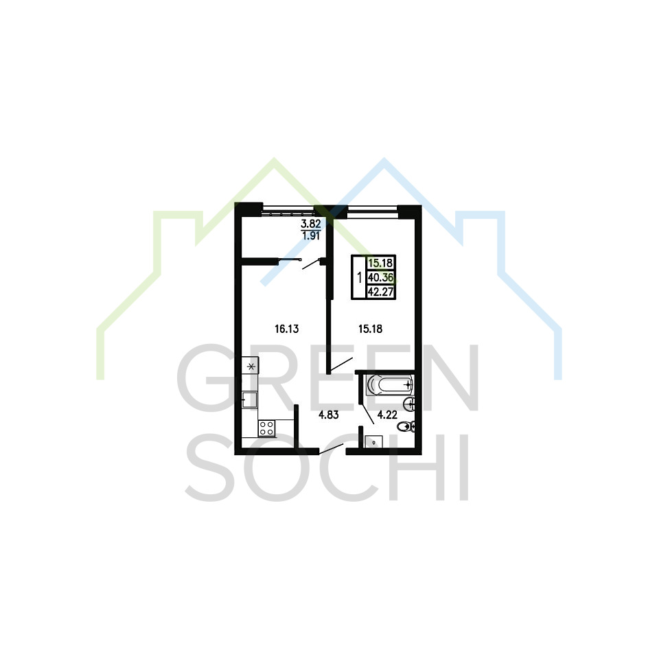 Общая площадь 42.27 м2