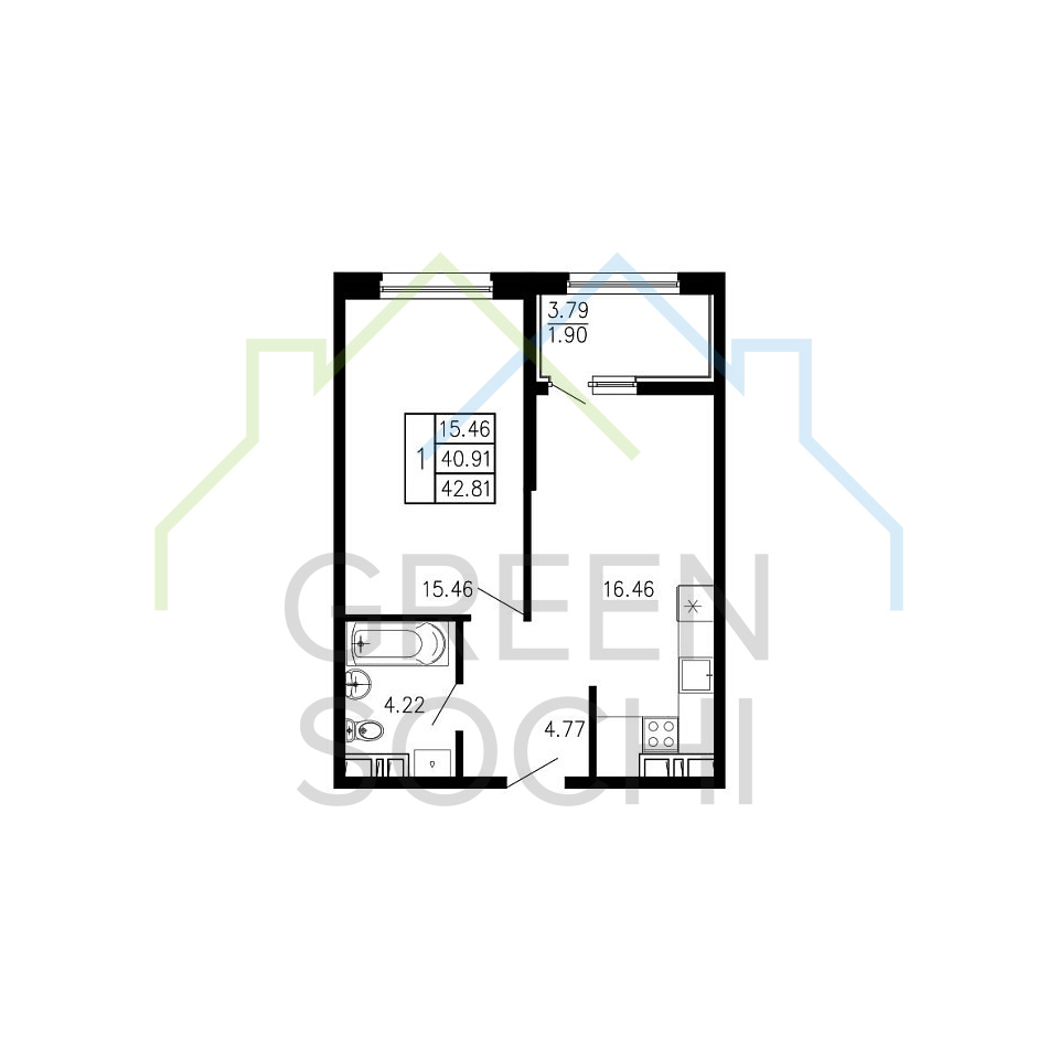 1-к квартира, 42.8 кв.м., в ЖК Просторы Крыма (№18526)