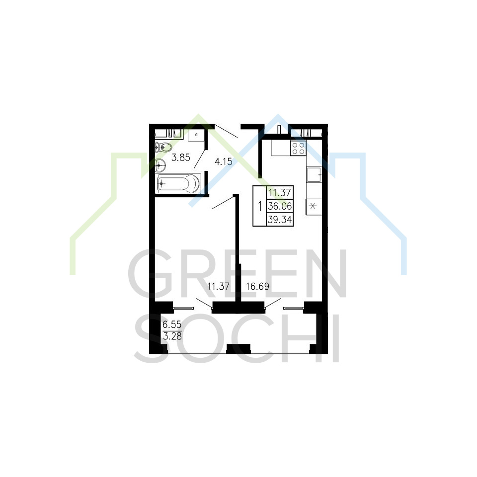 Общая площадь 39.74 м2