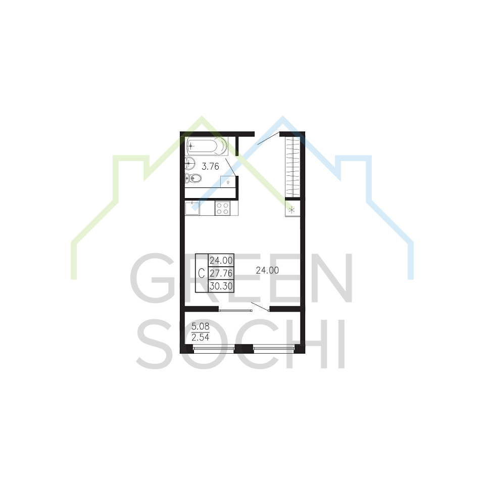 Cтудия, 30.3 кв.м., в ЖК Просторы Крыма (№16905)