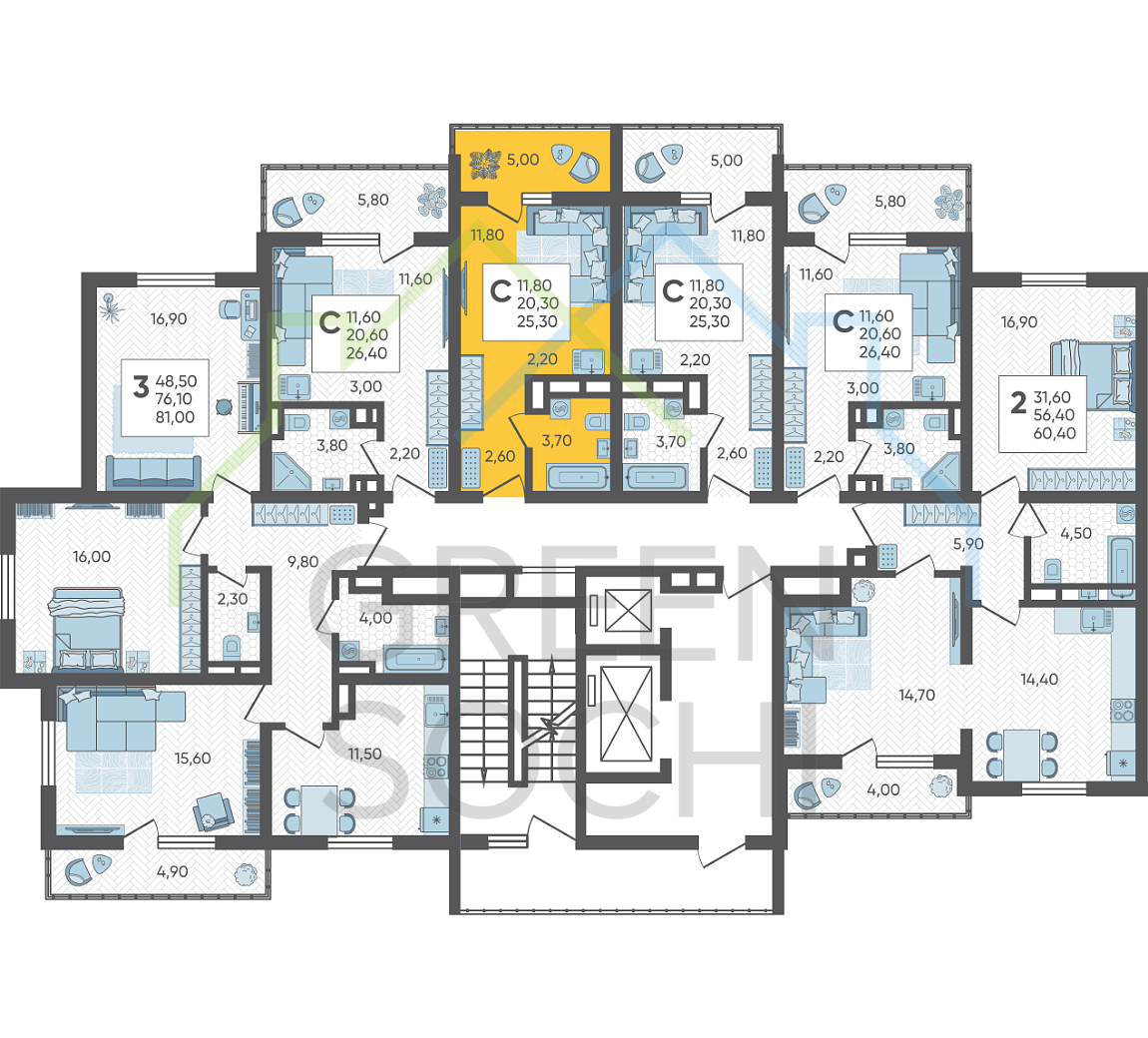 Продается студия в доме (Литер 4), срок сдачи : 3 кв. 2026, общей площадью 25.3 кв.м., на 15 этаже в новом современном жилом комплексе в Сочи «Горный квартал», Хостинский район. Отличный вариант для инвестиций и жизни.