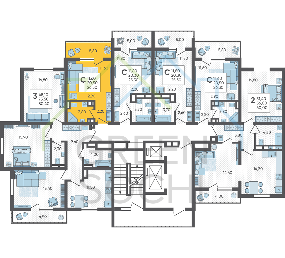 Продается студия в доме (Литер 4), срок сдачи : 3 кв. 2026, общей площадью 26.3 кв.м., на 4 этаже в новом современном жилом комплексе в Сочи «Горный квартал», Хостинский район. Отличный вариант для инвестиций и жизни.