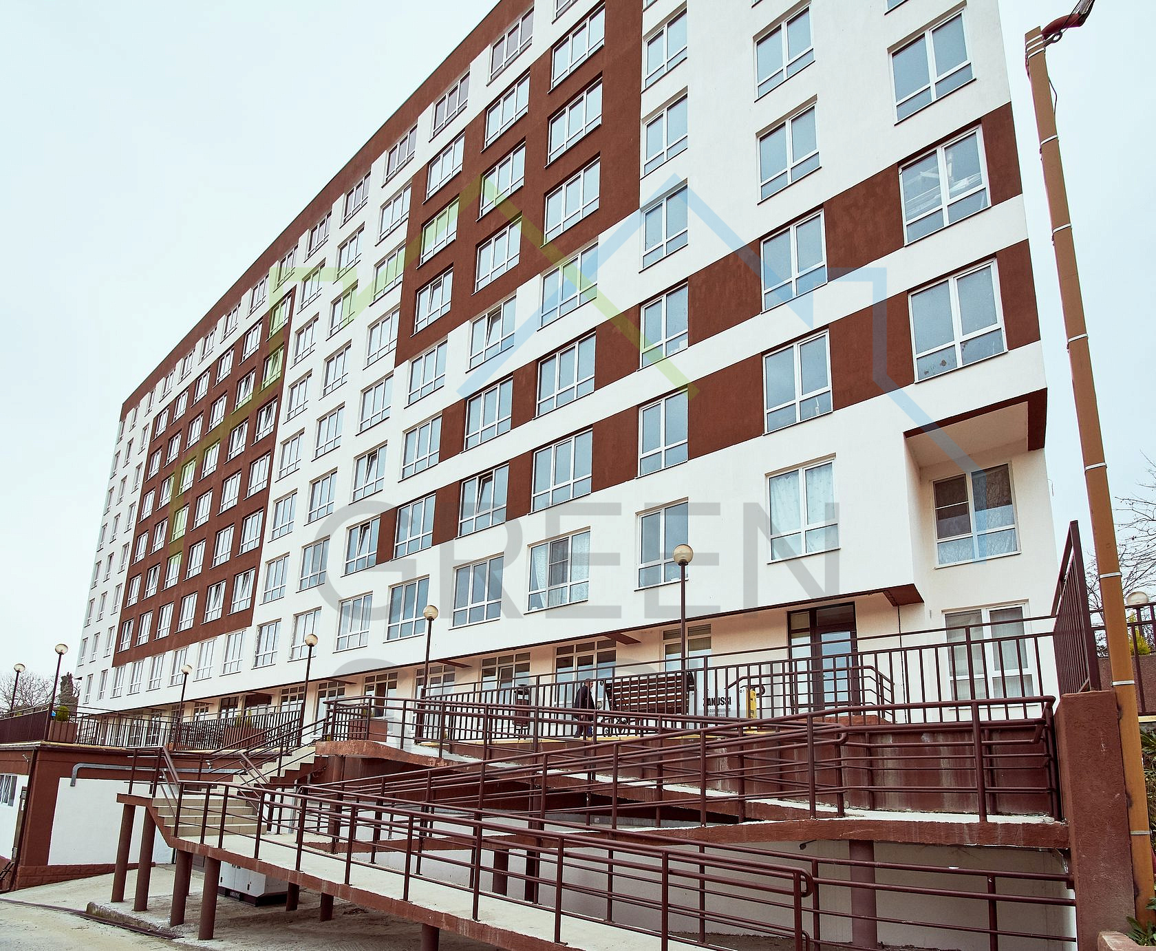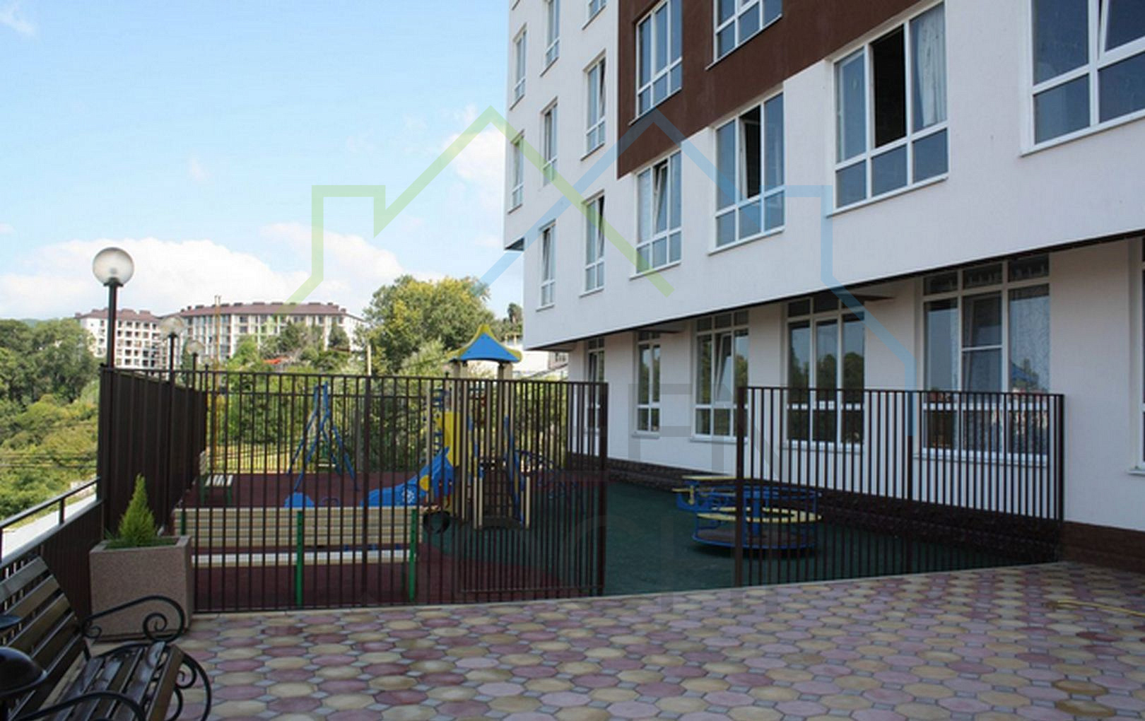 У комплекса собственная закрытая, охраняемая, благоустроенная территория, на которой разместились многоуровневый придомовой паркинг, зоны с ландшафтным озеленением и детская площадка.